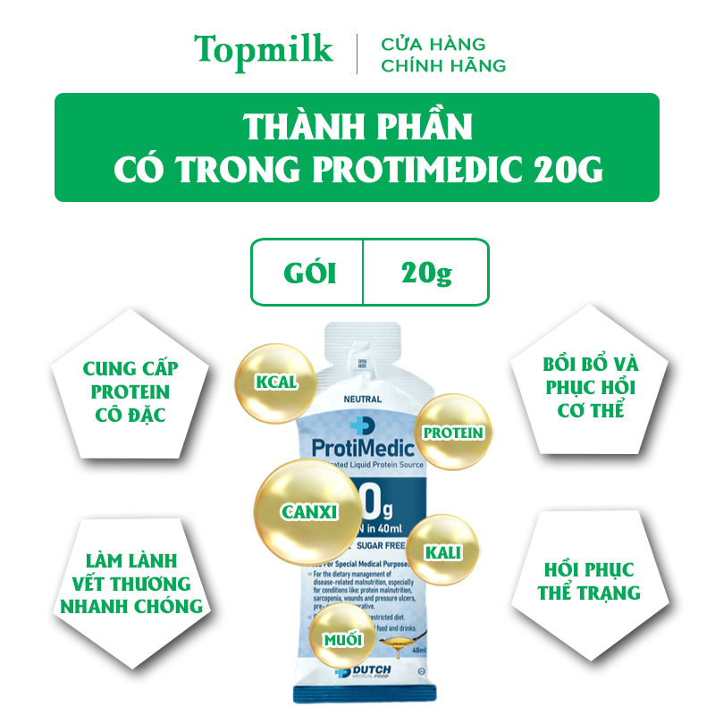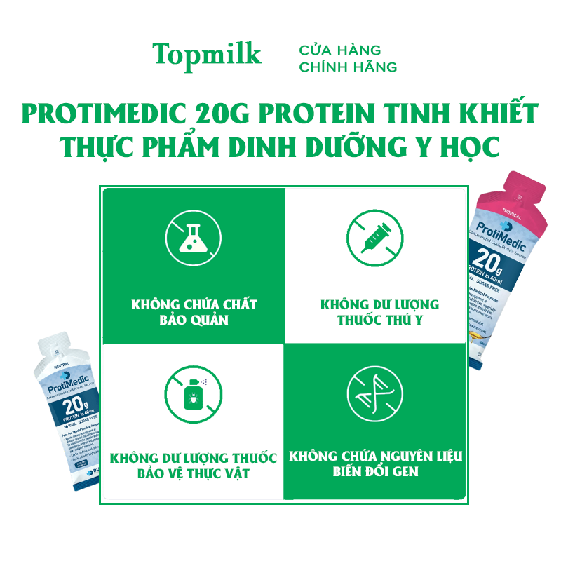 Với thành phần protein chất lượng cao 20g cùng thể tích gói nhỏ chỉ 40 ml dễ dàng mang theo, protimedic đang là lựa chọn ưu tiên của những người yêu thích thể thao